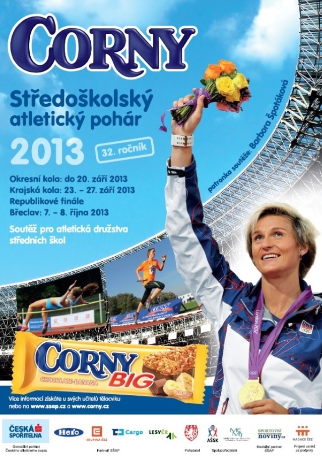 Účast studentů milevského gymnázia na středoškolském atletickém poháru CORNY má již několikaletou tradici. Soutěž letos vstoupila do dvaatřicátého ročníku, milevští gymnazisté se jí zúčastnili posedmé. Každoročně začíná soutěž vzáří okresními koly a končí zhruba v polovině října, kdy měří síly vítězové jednotlivých krajských kol na republikovém finále v Břeclavi. Na letošní okresní kolo, které proběhlo ve středu 18. září na píseckém atletickém stadionu, se vydala družstva z 6 středních škol Písecka. Opět se soutěžilo ve dvanáctičlenných družstvech v následujících disciplínách: krátké tratě (60, 100, 200 a 400 m), střední tratě (800 a 1500 m), vrh koulí, skok do výšky, skok do dálky a štafetový běh (100 – 200 – 300 – 400 m). Výkony jednotlivců se podle atletických tabulek převedly na body, jejich součet pak rozhodl o pořadí jednotlivých družstev.
